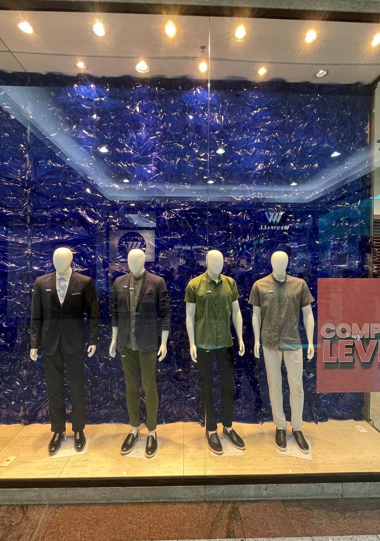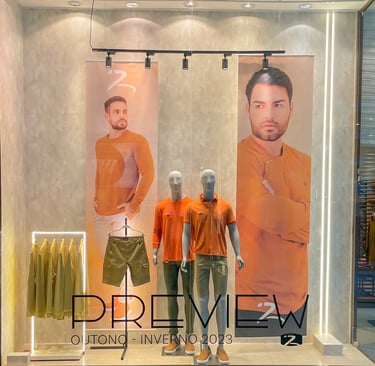 Vitrine sem impacto, comunicação confusa e pouca atração.